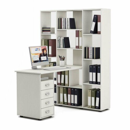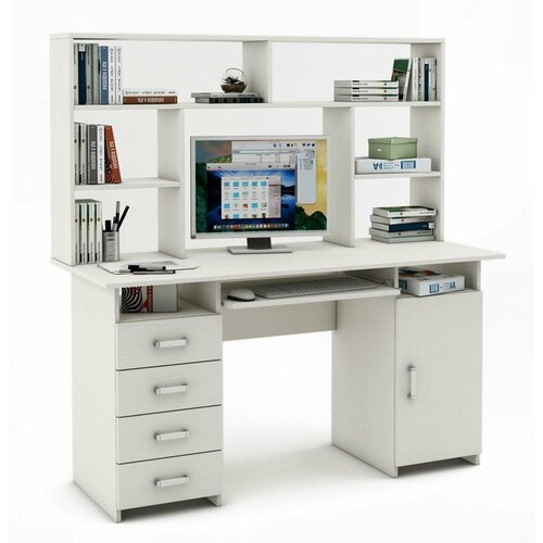 Компьютерный стол со стеллажом МФ Владимир Оксфорд-3 КСОК-3 корпус/фасад белое дерево