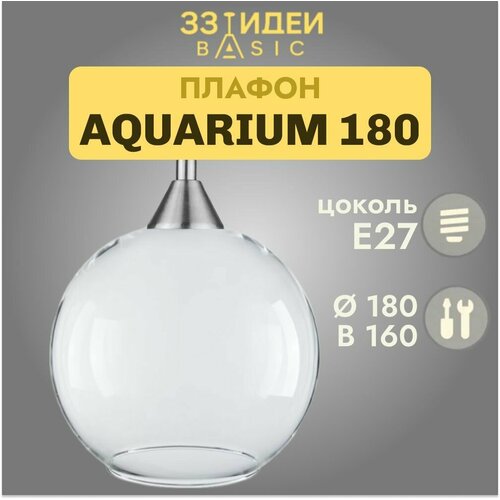 Плафон AQUARIUM 180 33 Идеи BASIC Прозрачный, Стекло, d 180 х в 160 мм, под цоколь Е27, посадочное 42 мм, для люстр, бра, потолочный S.13. TR
