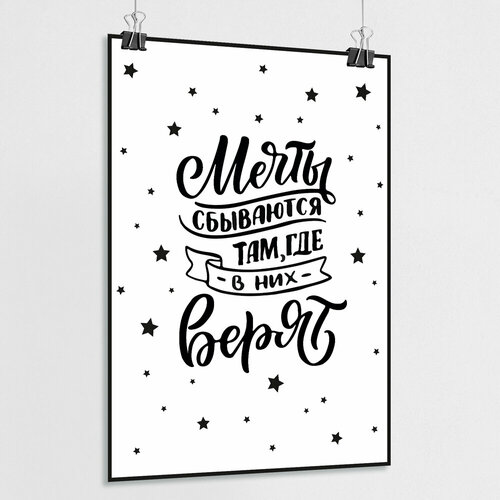 Мотивационный плакат / Интерьерный постер "Мечты сбываются там, где в них верят" / А-2 (42x60 см.)