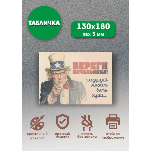 Шуточная табличка сарказм "Береги начальника." 13x18см