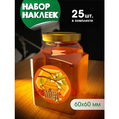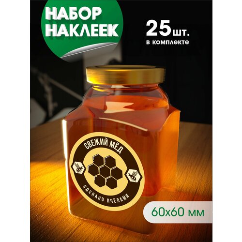Наклейки "МЁД" на банку, 60х60мм, 25 шт.