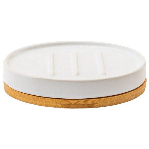 Мыльница Аквадекор Exo, керамика/бамбук, белая