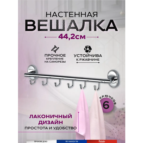 серебристый, хромПланка с крючками (5 крючков) Potato