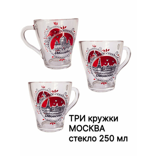 Кружка "Москва" - 3 штуки в наборе, объем 250 мл, стекло, дизайн с красными окошками