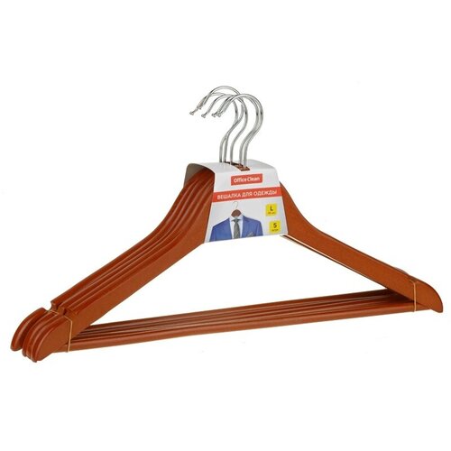 Вешалка-плечики OfficeClean, набор 5шт, деревянные, с перекладиной, 45см
