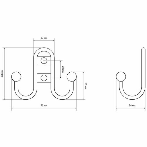 Вешалка настенная двухрожковая Стандарт 208 B GP золотистый 73х34х60 мм 2 крючка, 1616556