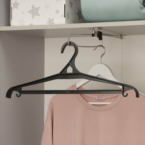 Плечики для одежды антискользящие, металлические с ПВХ покрытием, 5 шт, 39×20,5 см, цвет чёрный