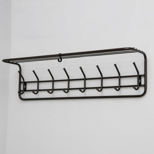 Вешалка настенная с полкой, 8 крючков, 97,5×22×26,5 см, цвет медный антик