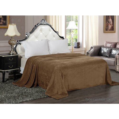 Плед для пикника / покрывало для пляжа на диван 180х200 на кровать двухспальный Бояртекс пушистый мягкий кофе с молоком