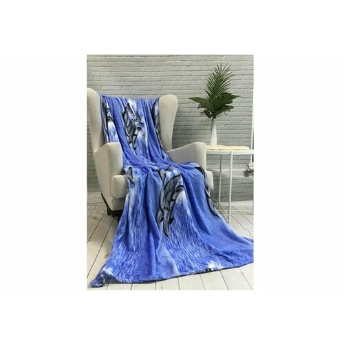 Плед флисовый Голубой Дельфины
