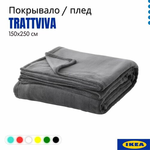 Покрывало-плед IKEA ТРАТТВИВА на кровать, диван, серый, 150х250 см