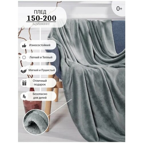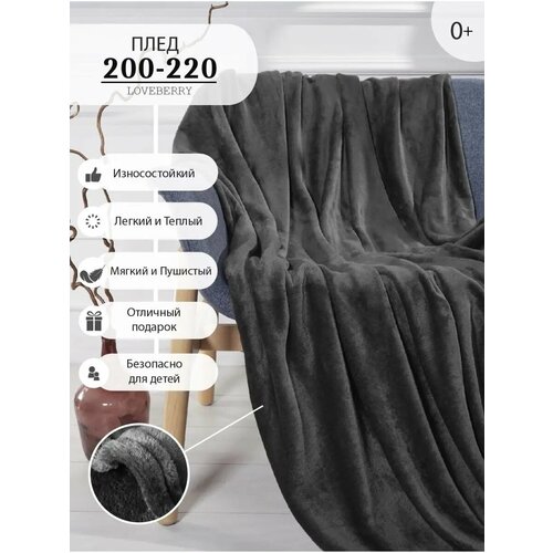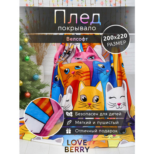 Плед 200х220 см LOVEBERRY Евро из велсофта, тренд 2025