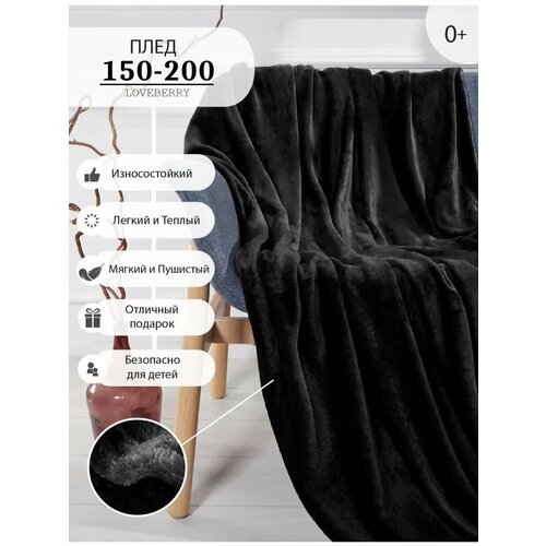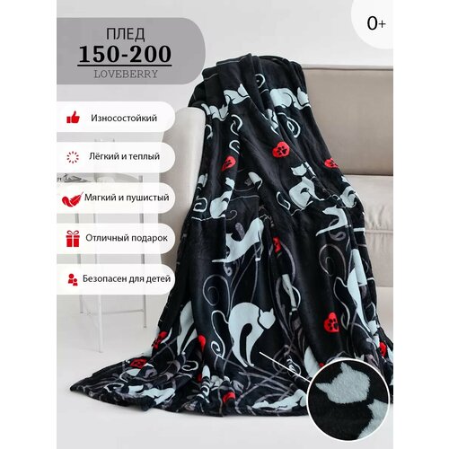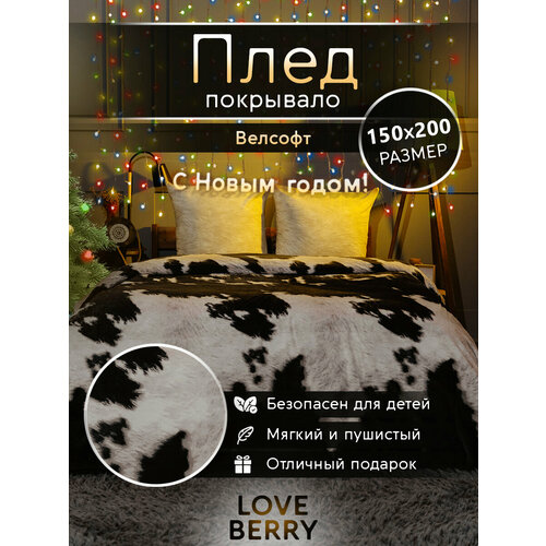Плед LOVEBERRY 150х200 см, 1,5 спальный, велсофт, тренд 2025
