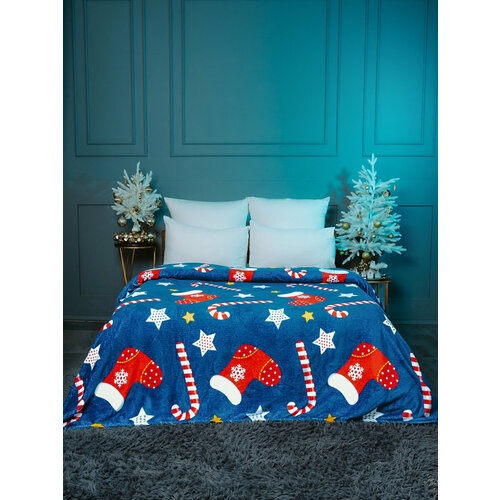 Плед LOVEBERRY Евро, 200х220 см из велсофта, Новогодний сапожок