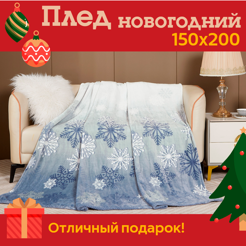 Плед полуторный 150х200, снежинки, покрывало на кровать и диван Cleo California, пушистый с рисунком, новогодний, флисовый, велсофт