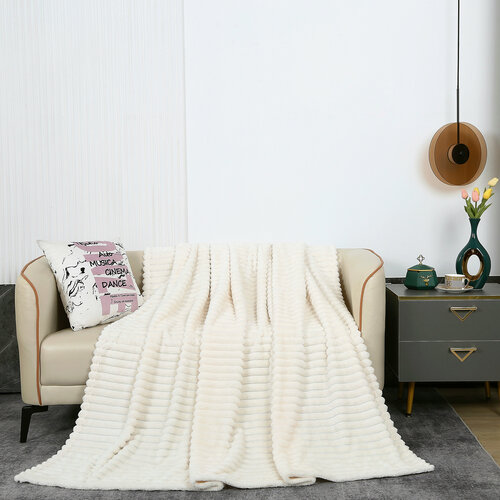 Плед-покрывало мех кролика 1.8м*2м, бежевое буклированное "волна"