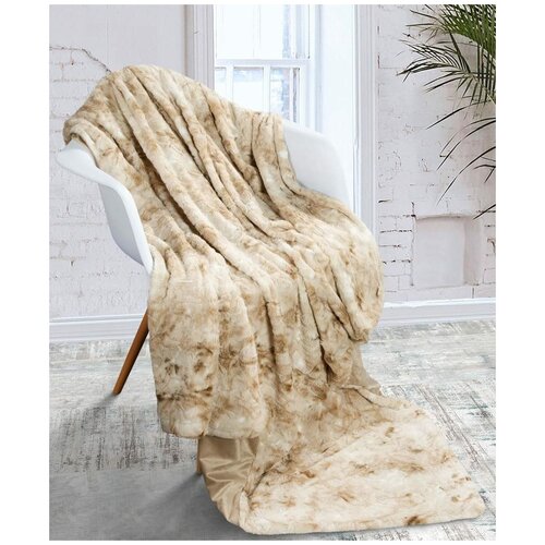Плед-покрывало мех кролика 1.8м*2м, бежевое буклированное "волна"