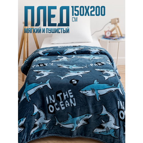 Плед 150х200 Павлина Акулы, 1.5 спальный, полуторный, синий