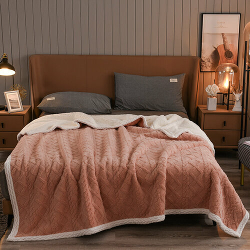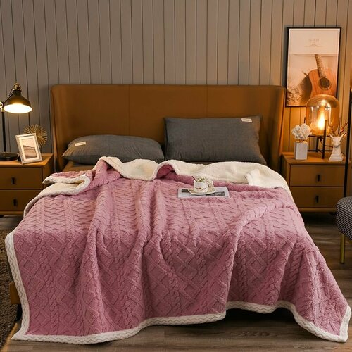 Плед-покрывало мех кролика 1.8м*2м, розовое буклированное "волна"
