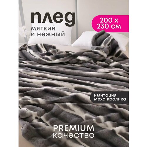 Плед 200x230 см, искусственный мех, 2-х спальное, двухсторонний