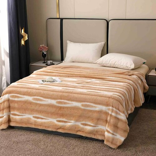 Плед-покрывало мех кролика 1.8м*2м, бежевое буклированное "волна"