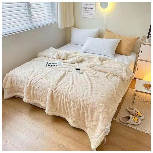 Плед-покрывало мех кролика 1.5м*2м, бежевое буклированное "волна"