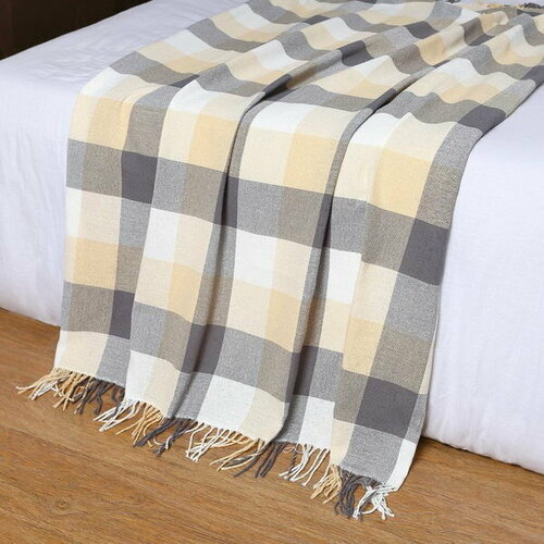 Плед Пикник 140х200см, цвет белый/бежевый/серый, хлопок 20%, пан 40%, полиэстер 40%