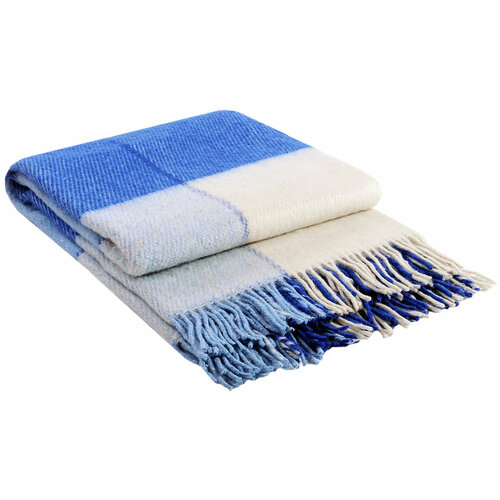 Плед шерстяной VLADI "Осло 02 белый/голубой/синий" 170х210 синий, белый, голубой, размер 1.5, спальный