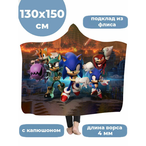 Плед с капюшоном еж Соник Sonic the Hedgehog 130х150 см