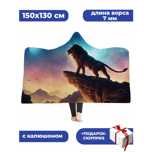 Плед с капюшоном Король лев Симба на утесе + Подарок Lion King 150х130 см