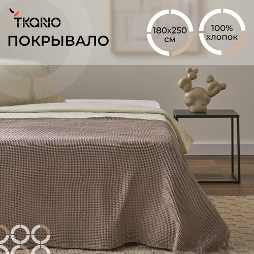 Покрывало вафельное 180х250 см на кровать из хлопка с бахромой бежевого цвета Essential Tkano TK24-BS0001