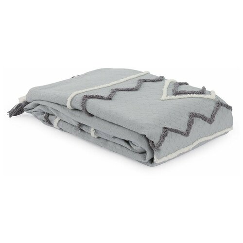 Покрывало из хлопка с бахромой голубого цвета из коллекции Ethnic, 180х250 см, Tkano, TK21-BS0002