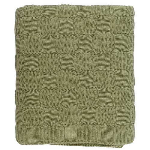 Плед из хлопка рельефной вязки травянисто-зеленого цвета из коллекции Tkano Essential, 130х170 см