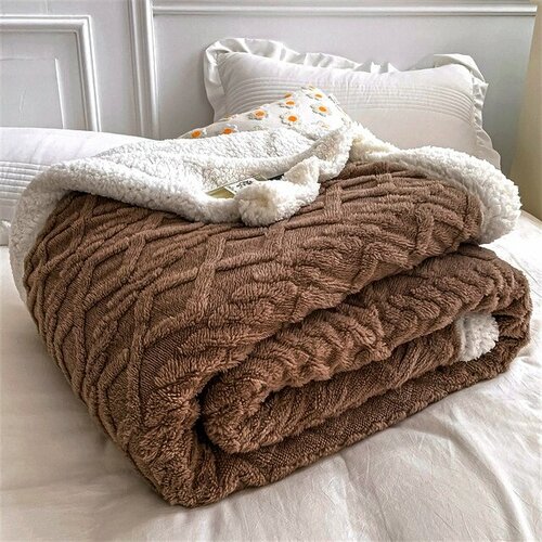 Плед Альпака Коричневый двусторонний 200х230 см. / Плед-покрывало для кровати / Плед двуспальнаый Евро 200х230 см