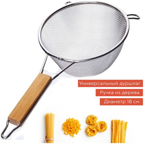 Дуршлаг металлический с ручкой для промывки крупы, риса, фруктов и овощей/ Сито для муки, диаметр 18 см/ Друшлаг на мойку / Для раковины и кастрюли