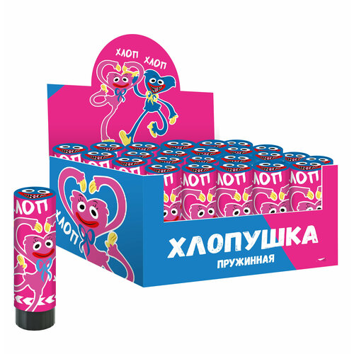 Хлопушка пружинная (4/10 см), Зубастики, Круги тишью, Розовый, 1 шт.