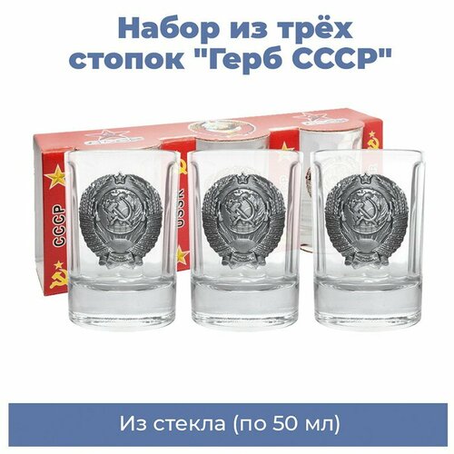 Подарки Набор из трёх стопок "Герб СССР" из стекла (50 мл)