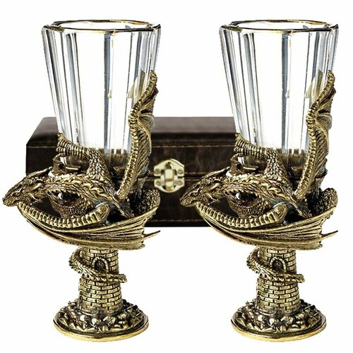 Подарки Набор из двух рюмок "Дракон" из латуни и хрусталя (50 мл)