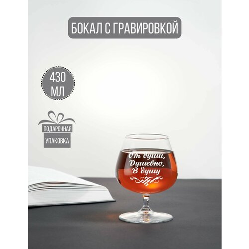 Бокал коньячный с гравировкой "От души, душевно, в душу"