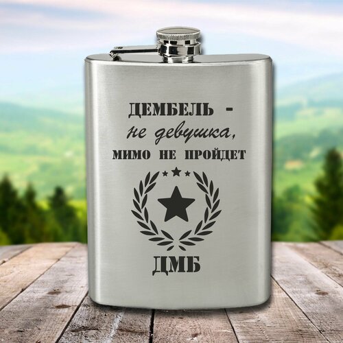Фляга с гравировкой Дембель не девушка, мимо не пройдет