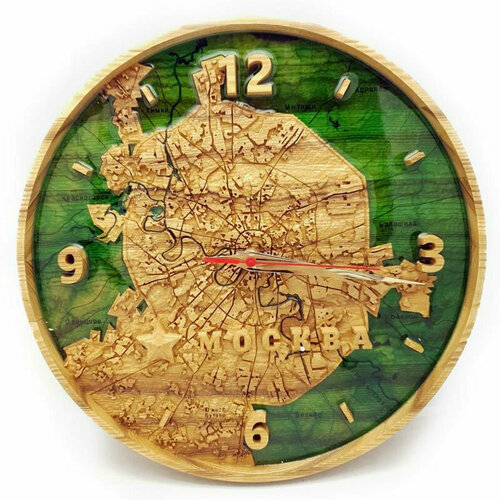 Подарки Дизайнерские объемные часы "Карта Москвы" из дерева и эпоксидной смолы (30 см)