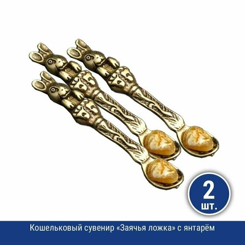 Подарки Кошельковый сувенир "Ложка-загребушка" с янтарём, 2 шт.