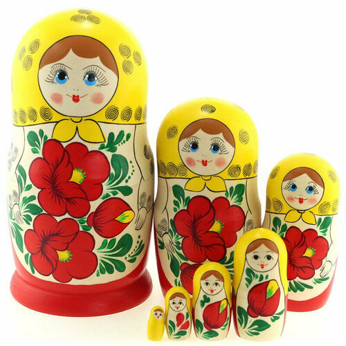 Подарки Матрешка "Желтый платочек, красные цветы" (5 мест, 18 см)