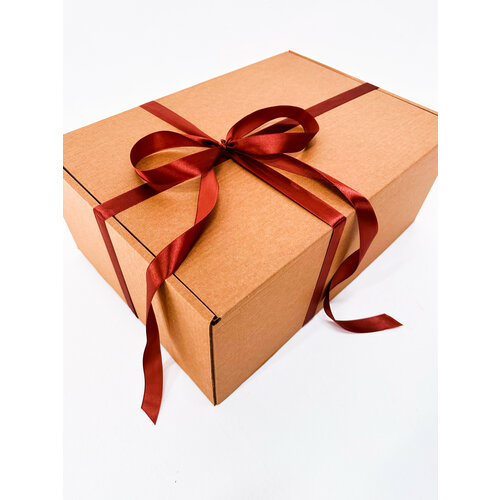 Подарочная коробка GILEV 32x22x10см с наполнителем и коричневой лентой