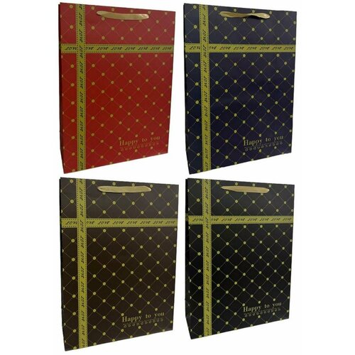 Подарочные пакеты "Happy" (12 шт в наборе) в ассортименте, 31x42x12 см, 4 вида