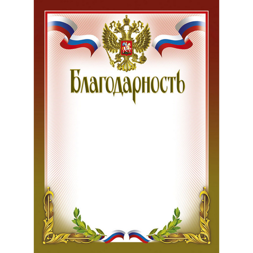 NoName Благодарность 210х290мм, 51/Б, герб, 230 г/м2, 10шт