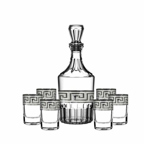 Подарочный набор для крепких напитков "Греческий узор" Серебряная грань(Графин-штоф, 500 мл + 6 стопок -60мл)