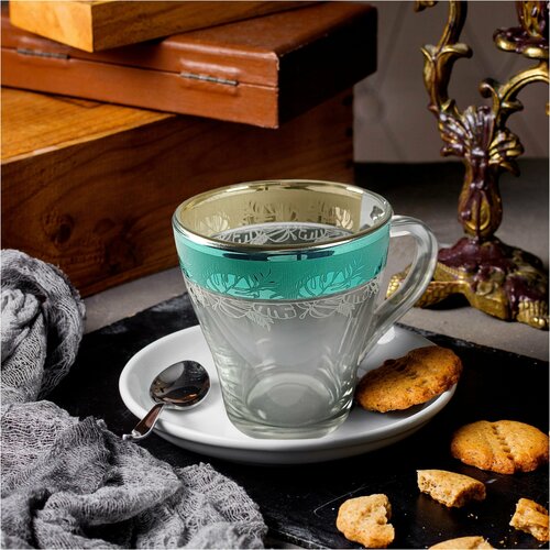 Подарочный набор турецких стаканов для чая / кофе, Армуды с алмазной гравировкой PROMSIZ масверк / 125 мл, 6 шт.