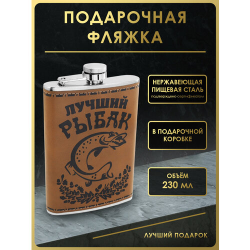 Фляга FL9-561, 9 унций - 0,26 литра, нержавеющая сталь, цвет серебристый, коричневая кожа с тиснением