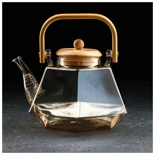 Чайник стеклянный заварочный с бамбуковой крышкой и металлическим фильтром «Октогон», 1,5 л, цвет золотой
